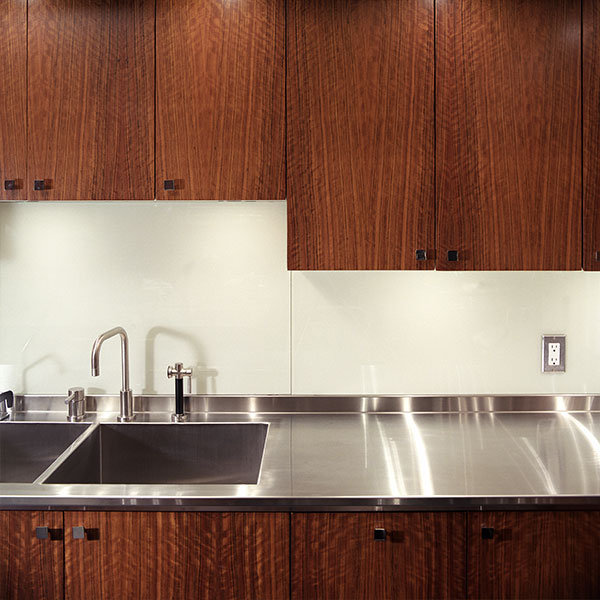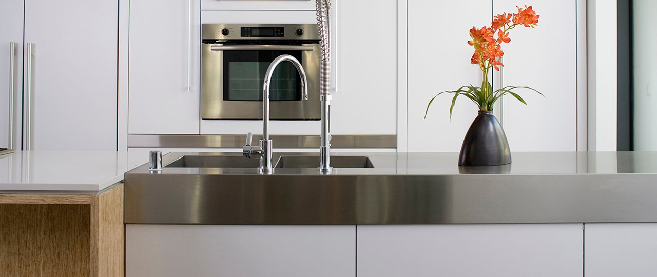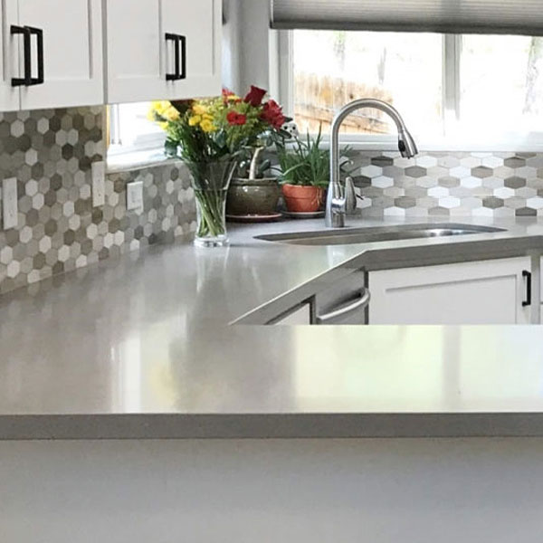 Choose sleek, low-maintenance stainless steel countertops — stain-resistant, easy to clean, and perfect for modern or professional-style kitchens.