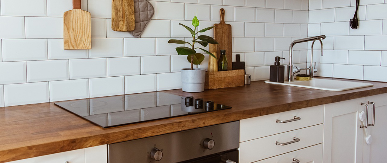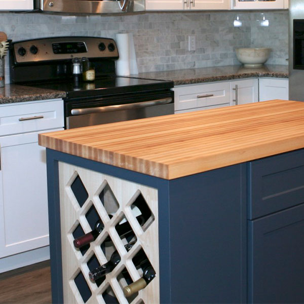 Add warmth and timeless character with butcher block-style wood countertops — combining natural beauty with a modern touch.